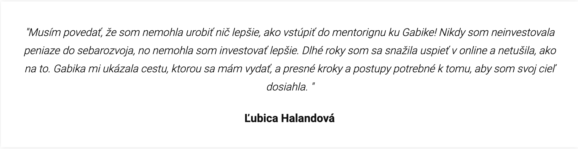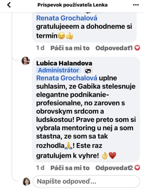 Ďakujem veľmi pekne Gabika za Tvoj program, ktorý ma podporil na mojej ceste v začiatkoch podnikania, otváral obzory, iné pohľady a previedol aj možnosťami online priestoru.